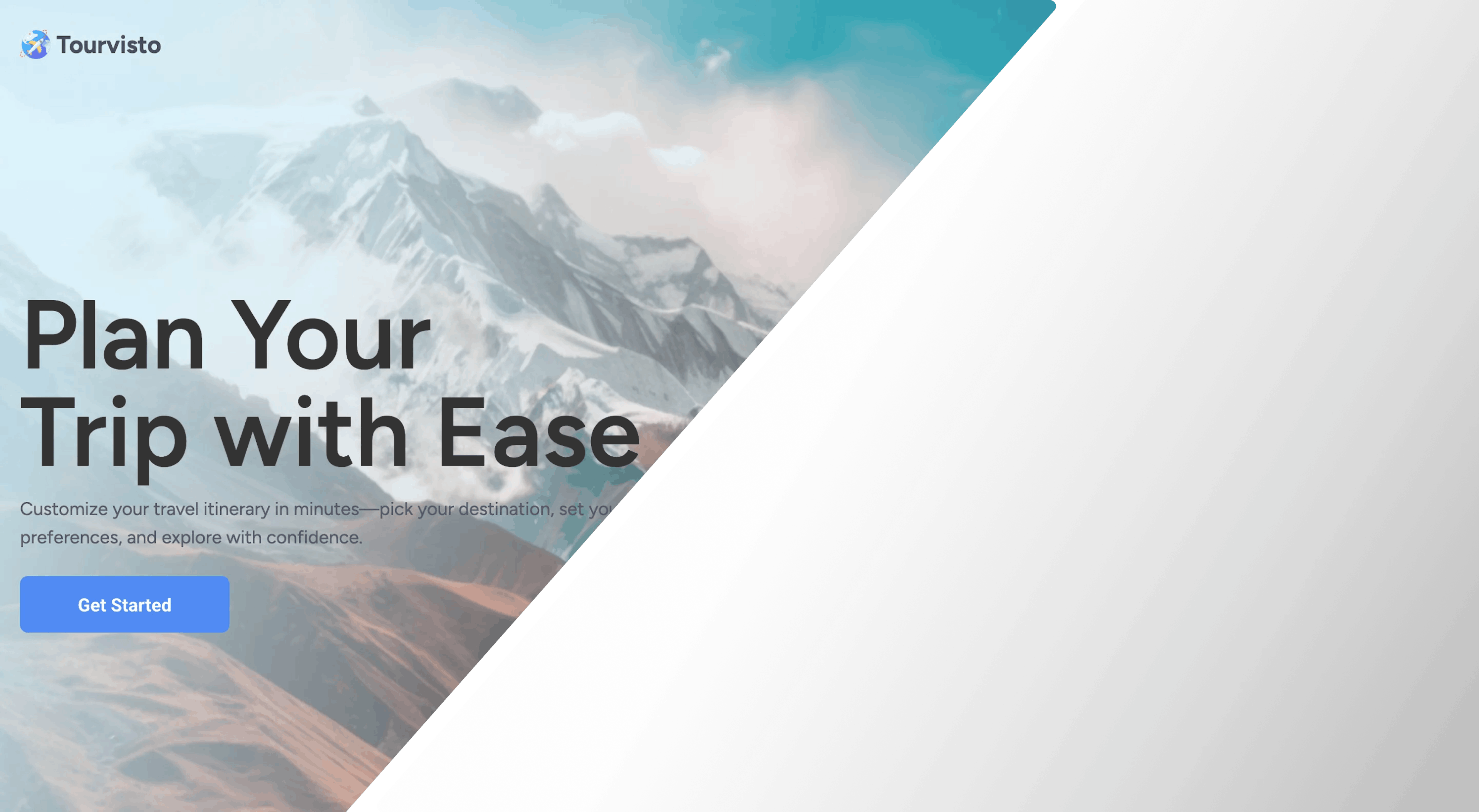 Tourvisto is a travel planning platform with admin dashboard and public facing website that leverages artificial intelligence to create personalized travel itineraries based on user preferences.